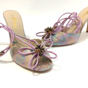 Refined shoes adorned with multicolored beads for a contemporary, unique, and exclusive look.