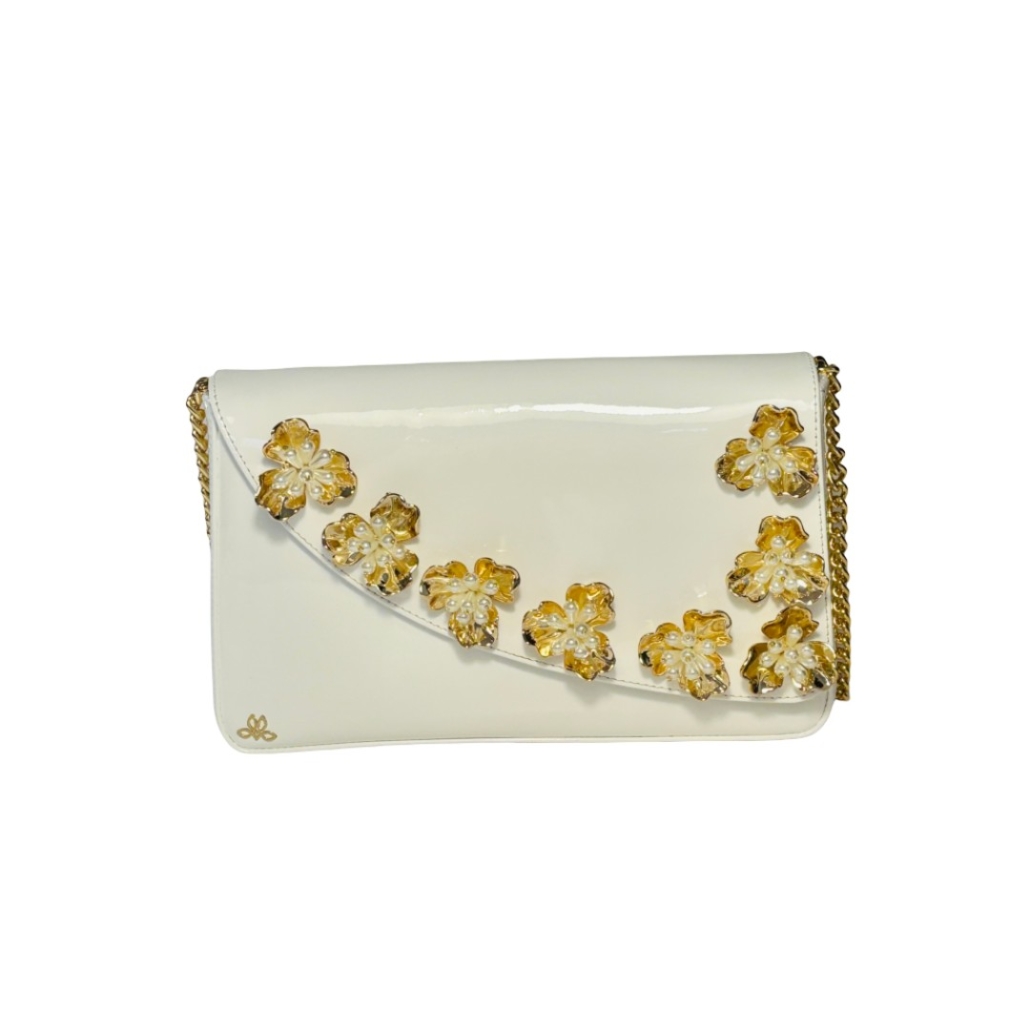 Accessori: Fiori fatti a conchiglia oro con perline bianche