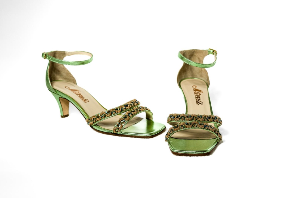 Accessory: Hand-sewn decorations with sparkling rose gold and green beads