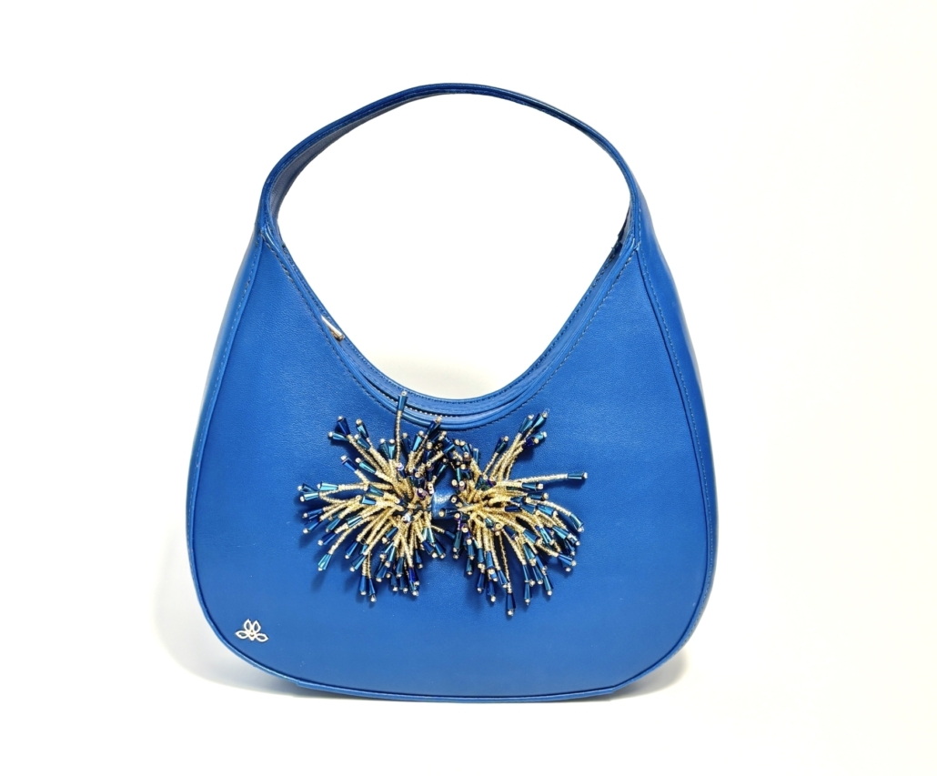 Accessorio: fiocco fatto e cucito a mano con perline oro e blu