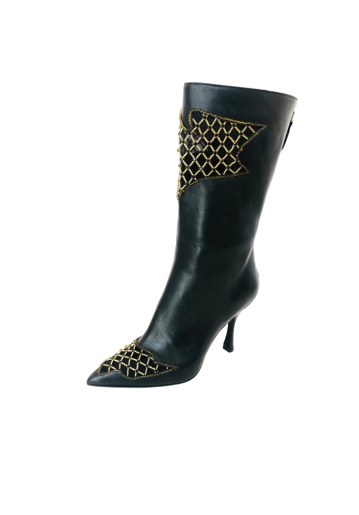 Stivale RAFI in capretto nero + rete con perline e catena oro