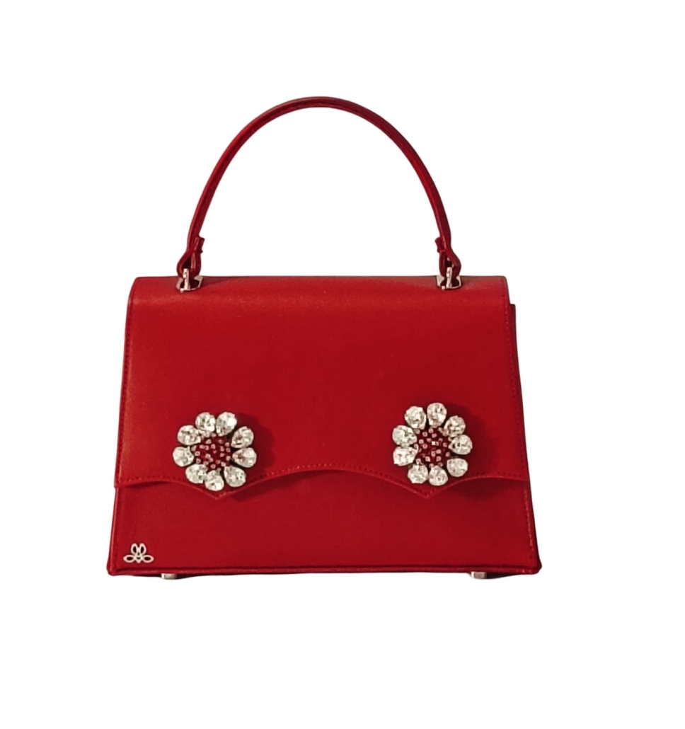 Accessori: Fiore fatto e cucito a mano con goccia crystal e perline rosse