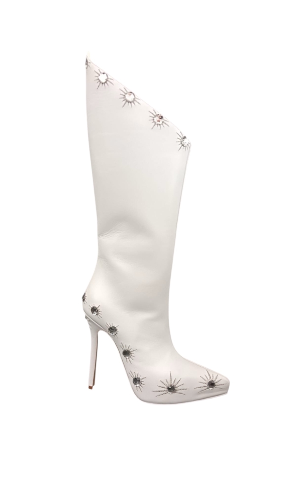 Stivale BIANCO con stella e strass argento
