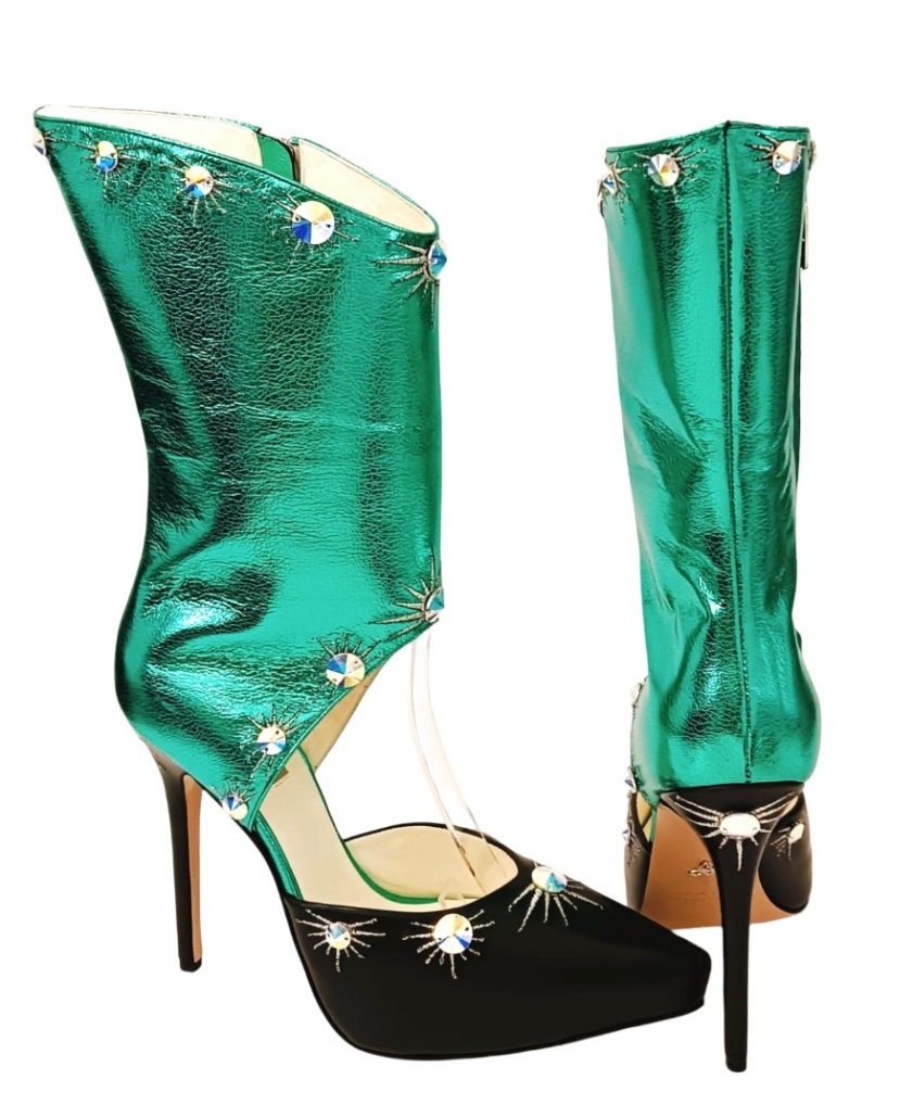 Stivale verde e nero con stelle e strass Aurora Boreale